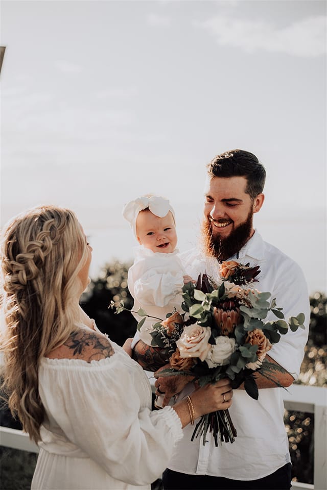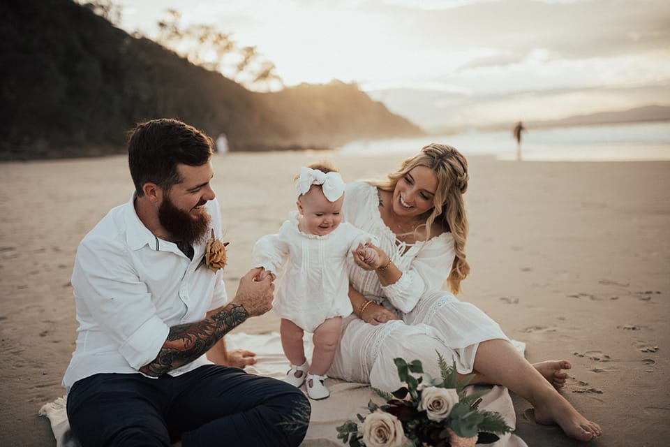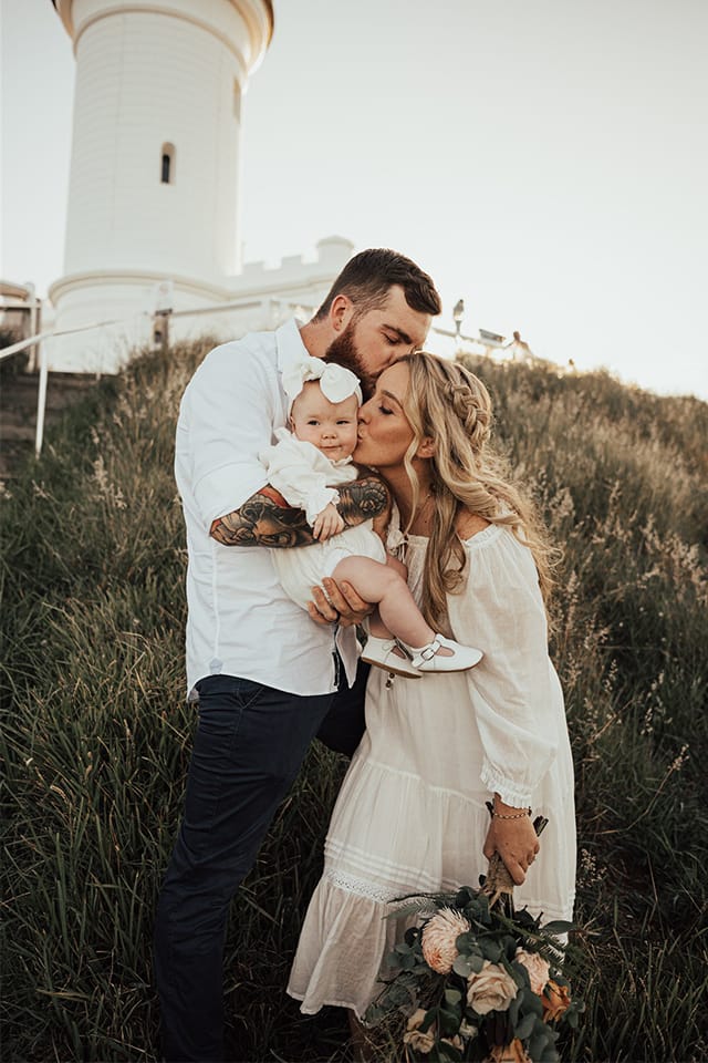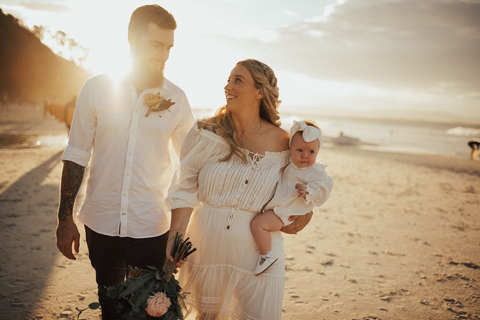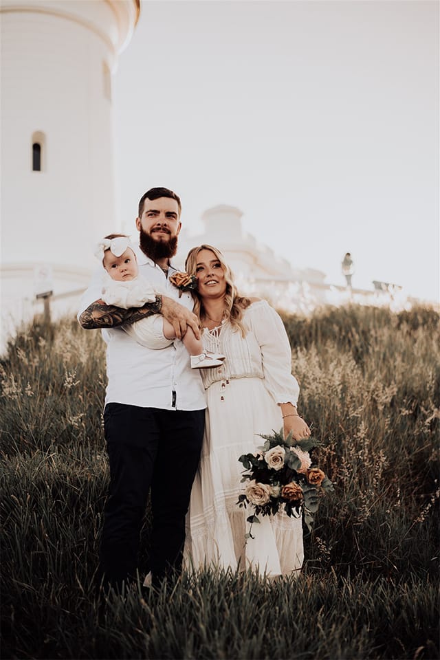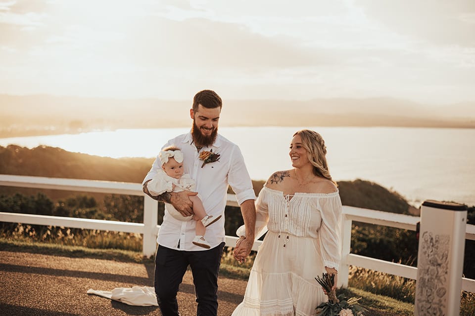 Bonnie & Chad, along with their adorable daughter Sadie (a strong contender for cutest baby ever!), ran to the light-filled beauty of Byron Bay to tie the knot in the most heartfelt and intimate way. Their chosen option? None other than a Byron Bay Elopement at the Lighthouse, perched at the most easterly point of Australia, overlooking the dazzling Bay of Byron.