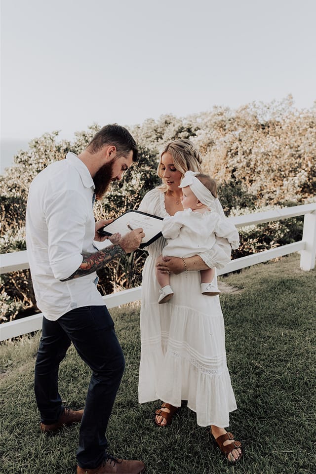 After weeks of rain, Byron turned it on with blue skies and a gentle breeze. We found a shady, serene nook near the lighthouse so young Sadie could sit rug-side, watching on as Mum & Dad held hands, exchanged vows, and shed the sweetest happy tears.