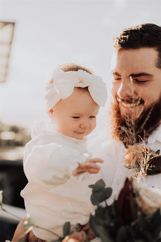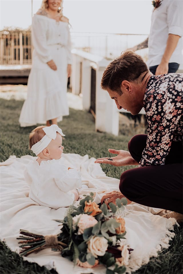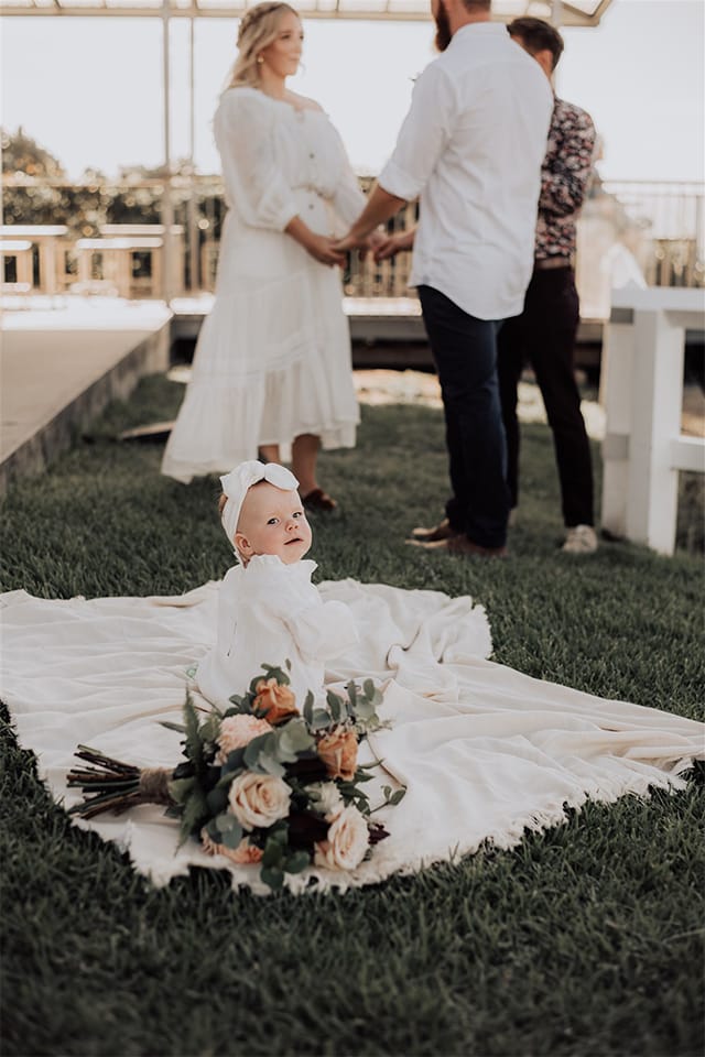 • 💍 A relaxed, boho-style ceremony with little Sadie giggling through it all