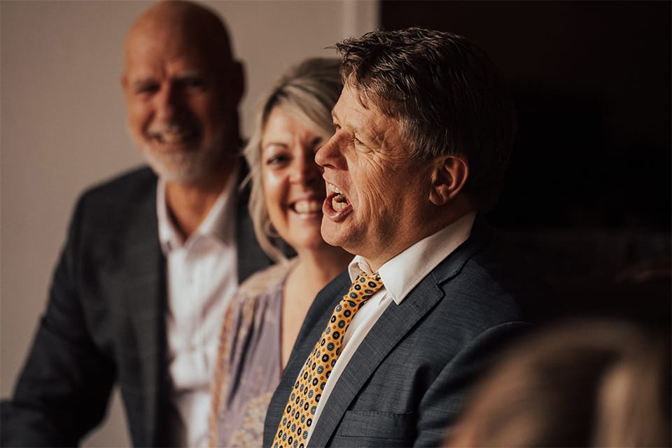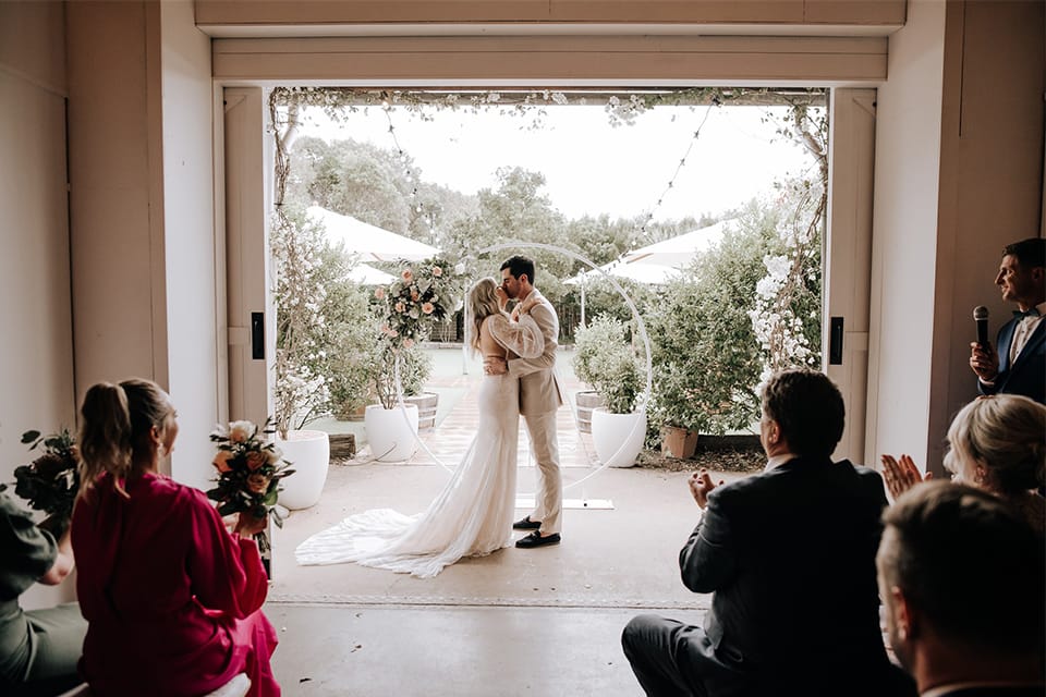 The plan was a heartfelt ceremony at Hastings Point, but with a 85% chance of rain during their chosen time, a smart pivot was made. Osteria Weddings had their gorgeous indoor space available, and it became the perfect Plan B.